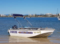 Gold Coast Boat Hire Coomera River Gold Coast Boat Hire logo GOLD COAST BOAT HIRE Gold Coast Boat Hire Pty Ltd has self-drive high quality boats for hire, which are very easy to operate.  We have a range of vessels which do not require a boat license to operate, and for those who hold a valid boat license, the Gold Coast Two vessel can get you to your destination quickly!  We have 4 person and 5 person boats available for hire.  Each boat is equipped with a GPS/Fish-finder, foldable canopy, marine radio, all safety gear including life jackets, rod holders, and a yabby pump. A full tank of fuel is included as part of the hire fee.  We launch the boats for you at the Paradise Point boat ramp.  A comprehensive safety briefing is given prior to departure. We offer half-day (4 hours), full-day (8 hours), 24 hour, and multi-day rates for our vessels - so whether you would just like a few hours fishing the pristine waterways of the Southport Broadwater and Southern Moreton Bay, or a lazy few days camping on the beautiful South Stradbroke Island, Gold Coast Boat Hire can meet your needs!   Please note the boats are not permitted to be driven at night, and the boats must remain within defined QLD smooth water limits (ie. the boats cannot be taken offshore through the Gold Coast Seaway or Jumpinpin Bar).  Owner Nic Welch has fished the Gold Coast waterways all his life, and will gladly share his local knowledge of where and how to catch a feed of fresh fish or crabs during your boating adventure!