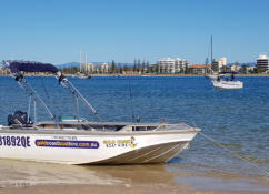 Gold Coast Boat Hire Coomera River Gold Coast Boat Hire logo GOLD COAST BOAT HIRE Gold Coast Boat Hire Pty Ltd has self-drive high quality boats for hire, which are very easy to operate.  We have a range of vessels which do not require a boat license to operate, and for those who hold a valid boat license, the Gold Coast Two vessel can get you to your destination quickly!  We have 4 person and 5 person boats available for hire.  Each boat is equipped with a GPS/Fish-finder, foldable canopy, marine radio, all safety gear including life jackets, rod holders, and a yabby pump. A full tank of fuel is included as part of the hire fee.  We launch the boats for you at the Paradise Point boat ramp.  A comprehensive safety briefing is given prior to departure. We offer half-day (4 hours), full-day (8 hours), 24 hour, and multi-day rates for our vessels - so whether you would just like a few hours fishing the pristine waterways of the Southport Broadwater and Southern Moreton Bay, or a lazy few days camping on the beautiful South Stradbroke Island, Gold Coast Boat Hire can meet your needs!   Please note the boats are not permitted to be driven at night, and the boats must remain within defined QLD smooth water limits (ie. the boats cannot be taken offshore through the Gold Coast Seaway or Jumpinpin Bar).  Owner Nic Welch has fished the Gold Coast waterways all his life, and will gladly share his local knowledge of where and how to catch a feed of fresh fish or crabs during your boating adventure!